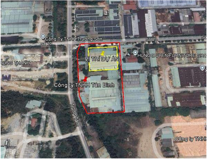 * Hiện trạng mặt bằng dự án đã có công trình Xưởng sản xuất số 01, xưởng sản xuất số 05 và phòng trưng bày với diện tích Công ty TNHH Tân Bình cho Công ty TNHH Sản xuất – Thương mại .... thuê lại là 4.000m2 (Chỉ bao gồm phần diện tích nhà xưởng, không bao gồm phần diện tích cây xanh xung quanh).