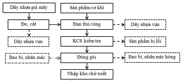 Sản phẩm cơ khí sau khi hoàn thiện sẽ chuyển qua công đoạn đan dây nhựa giả mây, tạo thành các sản phẩm nhựa giả mây. Dây nhựa sẽ được đo, cắt thành từng đoạn theo kích thước của từng sản phẩm; sau đó được thực hiện đan vào các sản phẩm cơ khí đã được gia công tạo hình dáng theo đơn đặt hàng của khách hàng. Sản phẩm sau khi đan được bộ phận KCS kiểm tra đạt chất lượng trước khi đóng gói, nhập kho thành phẩm chờ xuất xưởng.